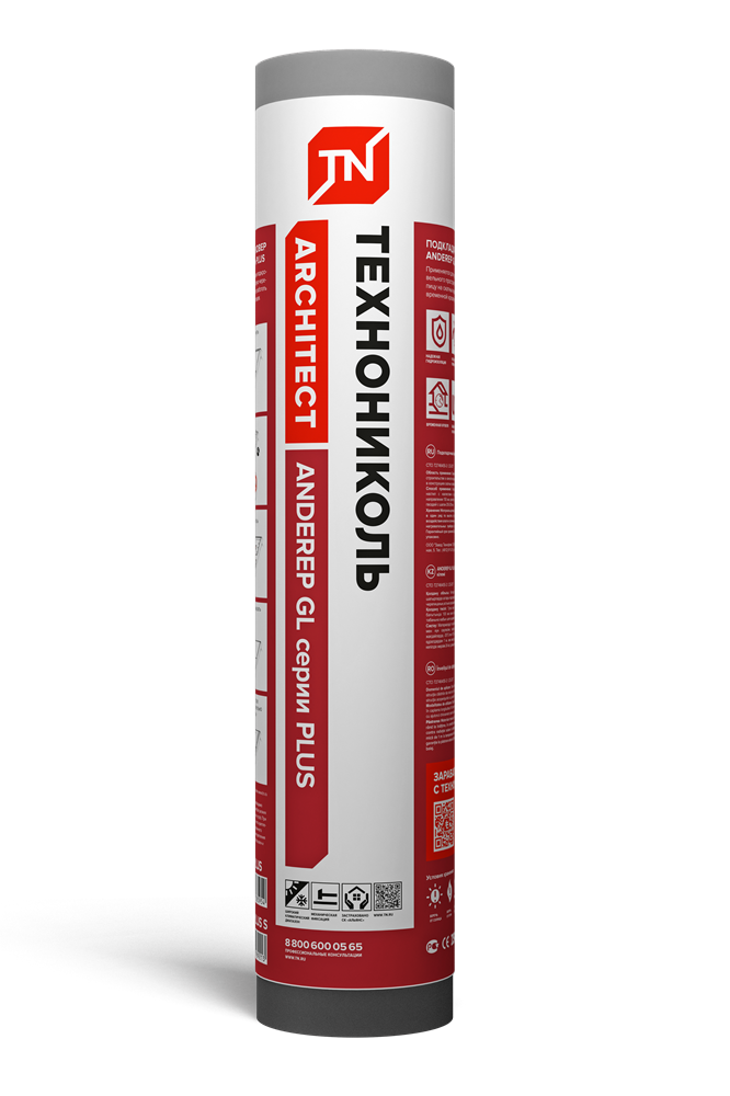 Технониколь ANDEREP GL Plus – подкладочный ковер для скатной кровли из мягкой черепицы. Производится из стеклохолста и битумно-полимерного вяжущего. Верх полотна покрыт для защиты нетканым полипропиленом, на который нанесена монтажная разметка, снизу выполнена посыпка из мелкозернистого песка.
