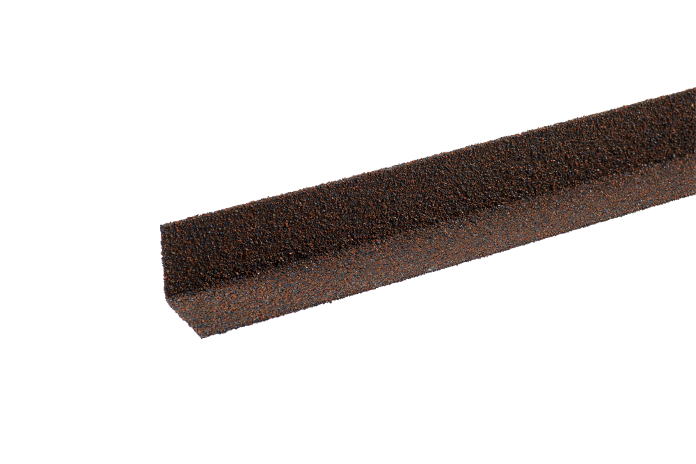 Уголок формируется из высококачественной стали и покрывается слоем алюмоцинка и акрилового грунта. На внешнюю сторону изделия для защиты и завершения эстетического вида наносится натуральная базальтовая посыпка.